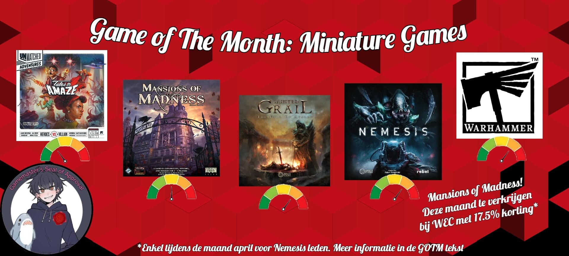 Sinds oktober kan je de GOTM ook op de tafels zien verschijnen en kun je elke maand bij WEC een bordspel binnen de categorie kopen aan 17,5% korting!